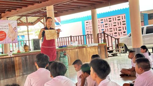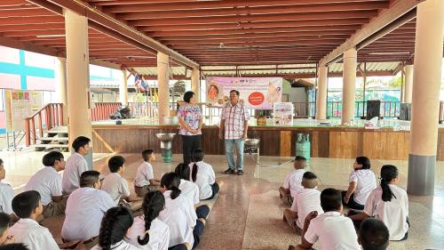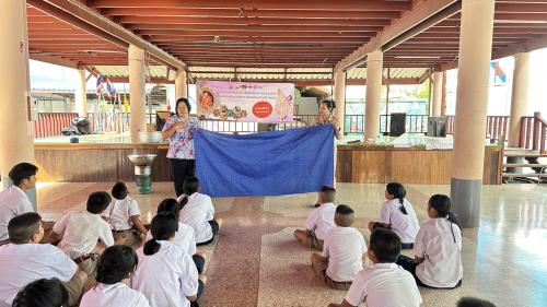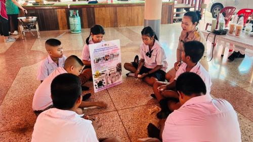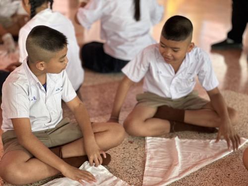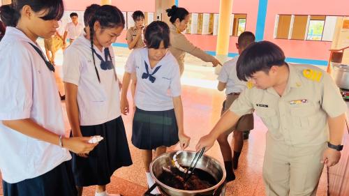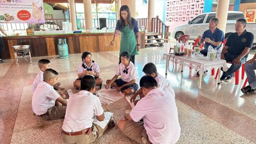 นางสาวิตรี ประดิษแจ้ง พัฒนาการอำเภอบางคล้า พร้อมด้วย เจ้าหน้าที่พัฒนาชุมชน สำนักงานพัฒนาชุมชนอำเภอบางคล้า จัดกิจกรรมส่งเสริมการย้อมผ้าด้วยสีธรรมชาติ “มัดย้อม มัดใจ” ภายใต้โครงการ 8 ริ้ว Soft Power ส่งเสริมการใช้การสวมใส่ผ้าไทยใส่ให้สนุก และโครงการอนุรักษ์พันธุกรรมพืชอันเนื่องมาจากพระราชดำริ สมเด็จพระเทพรัตนราชสุดา สยามบรมราชกุมารี (อพ.สธ.) ณ โรงเรียนวัดบางกระเจ็ด หมู่ที่ 9 ตำบลบางกระเจ็ด อำเภอบางคล้า จังหวัดฉะเชิงเทรา โดยมีกลุ่มเป้าหมายเป็น นักเรียนชั้นประถมศึกษาปีที่ 1 – ชั้นมัธยมศึกษาปีที่ 3 และคณะครูโรงเรียนวัดบางกระเจ็ด พร้อมด้วยกำนันตำบลบางกระเจ็ด ผู้ใหญ่บ้านหมู่ที่ 6 และหมู่ที่ 9 ตำบลบางกระเจ็ด จำนวน 40 คน เข้าร่วมกิจกรรมฯ โดยกิจกรรมมีวัตถุประสงค์เพื่อส่งเสริมการใช้ประโยชน์จากต้นไม้ประจำจังหวัดฉะเชิงเทรา (ต้นนทรีป่า) และพืชพื้นถิ่นมาเป็นสีธรรมชาติ ในการส่งเสริมความรู้ หรือสร้างรายได้ โดยการสาธิตการทำผ้ามัดย้อมโดยใช้สีจากต้นนนทรีป่า