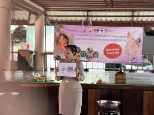 ในการนี้ นางสาวเอมอร มะนะวะ นักวิชาการพัฒนาชุมชนชำนาญการ สำนักงานพัฒนาชุมชนจังหวัดฉะเชิงเทรา ได้ประชาสัมพันธ์ การใช้และสวมใส่ผ้าลายพระราชทาน และผ้าพื้นถิ่นจังหวัดฉะเชิงเทรา (ผ้าด่อน) แก่ผู้เข้าร่วมกิจกรรมอีกด้วย